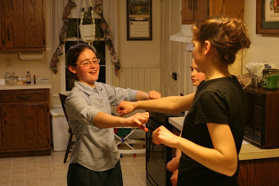 Yes, we are friends, and No, we are not practicing karate! (We are merely pantomiming the taffy-pulling process.)